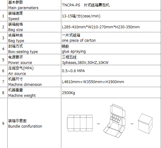 整機(jī)采用PLC及伺服電機(jī)作為控制和驅(qū)動(dòng)單元,實(shí)現(xiàn)自動(dòng)送箱、產(chǎn)品整列入箱、折箱、封箱 自動(dòng)流程。