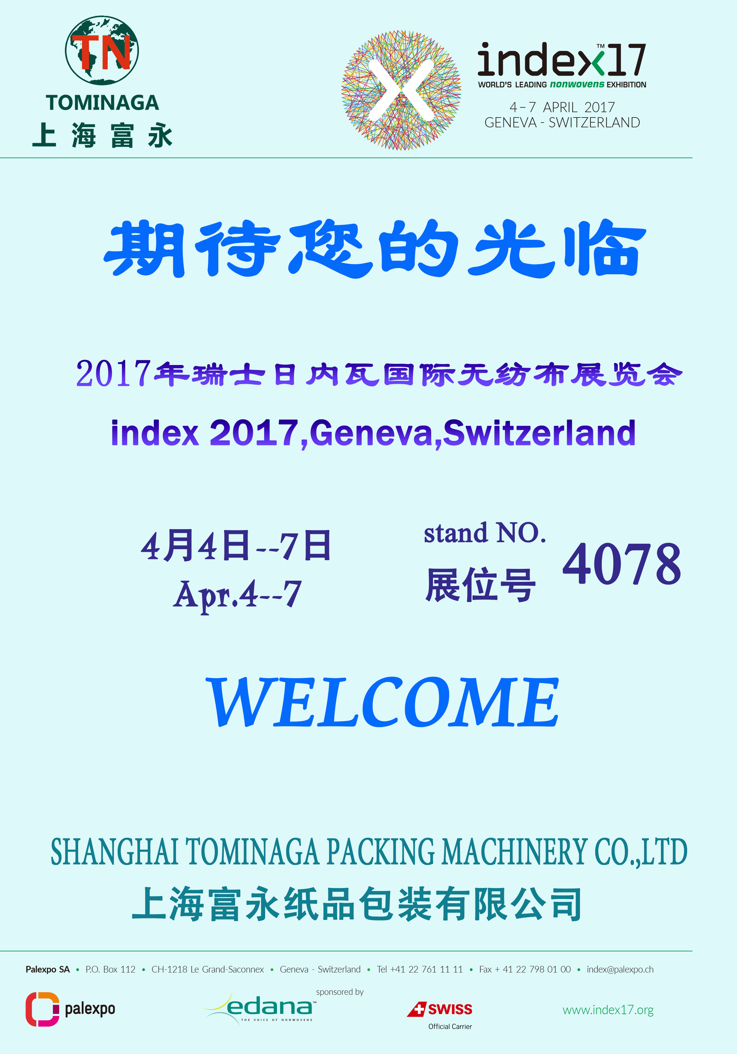 2017年4月4日-7日2017瑞士(日內瓦)無紡布展,上海富永歡迎您蒞臨觀展。